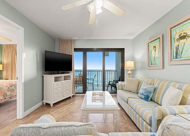 Welcome to The Commodore Condominium unit 702. Located on the quiet East End of Panama City Beach, you will be within walking distance of many local favorite dining spots, and only moments from local marinas, golfing, St. Andrews State Park, Schooners beachfront dining and many more to be explored! Directly facing the Gulf of Mexico on the "World's Most Beautiful Beaches", this family resort has a seasonally heated outdoor pool, kiddie pool, and hot tub. The resort offers a basketball court, shuffleboard and cornhole. If you'd like to be the grill master on vacation, there is a pavilion with grills for grilling up your favorite dinner! On a cooler night enjoy smore's by the fire pit near the pavilion. With the direct beach access, you will be just steps from the sugary white sand beaches, where you will find chair and umbrella rentals, jet ski rentals, volleyball, and many more activities. This property truly has it all!